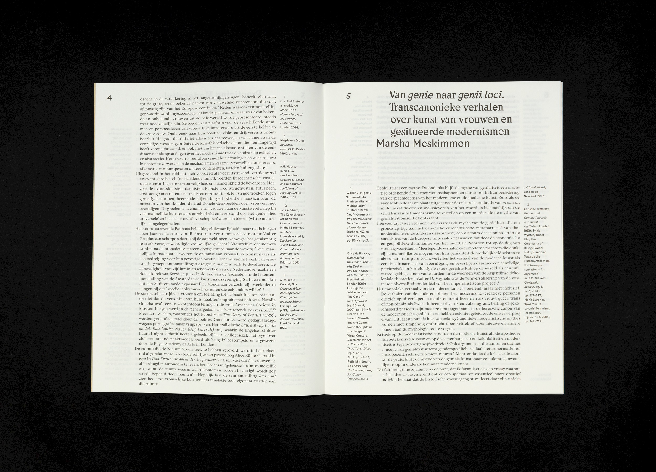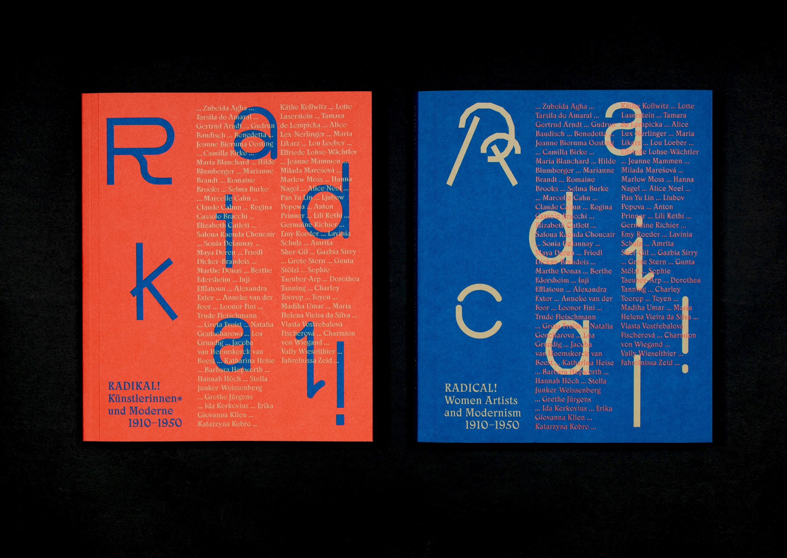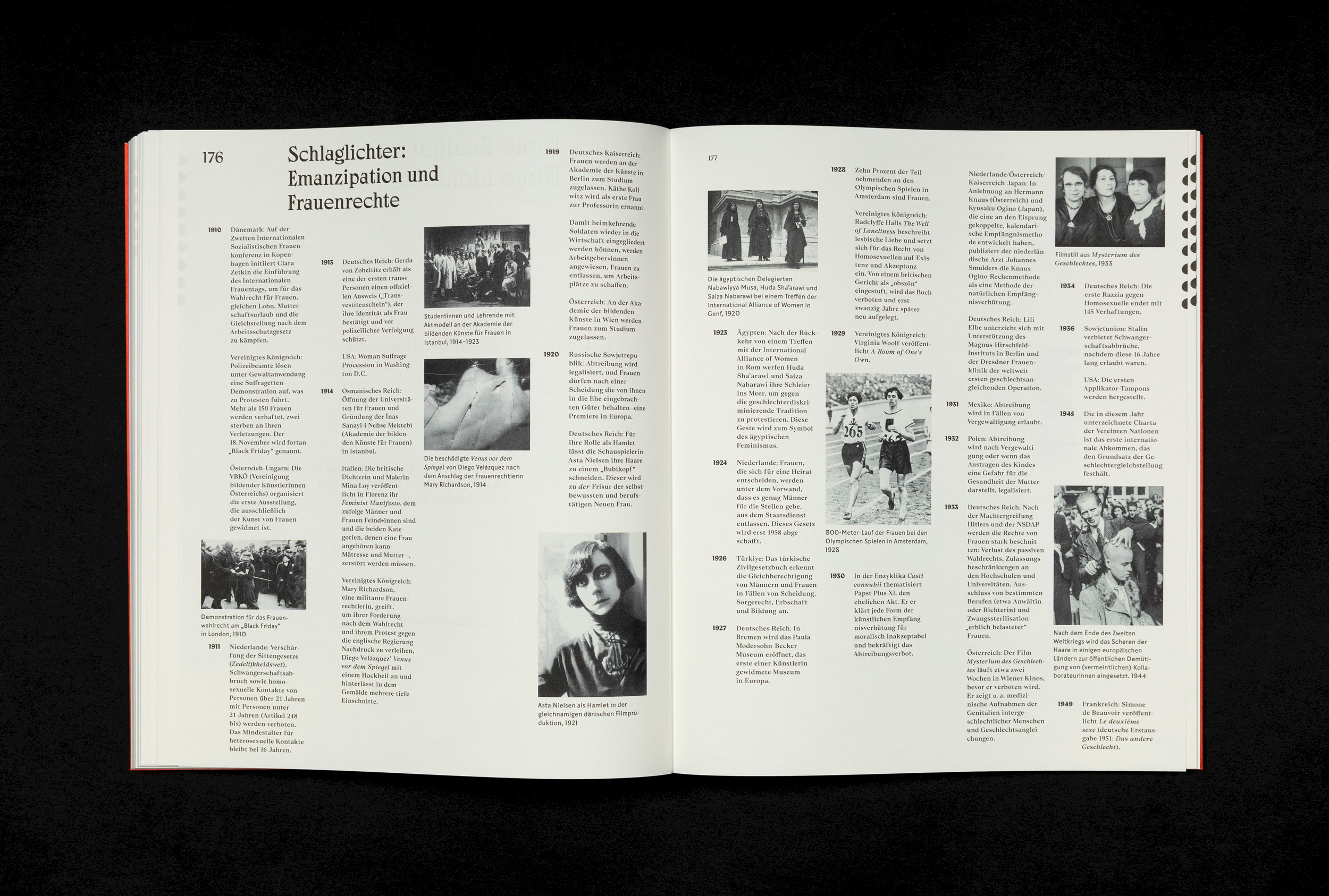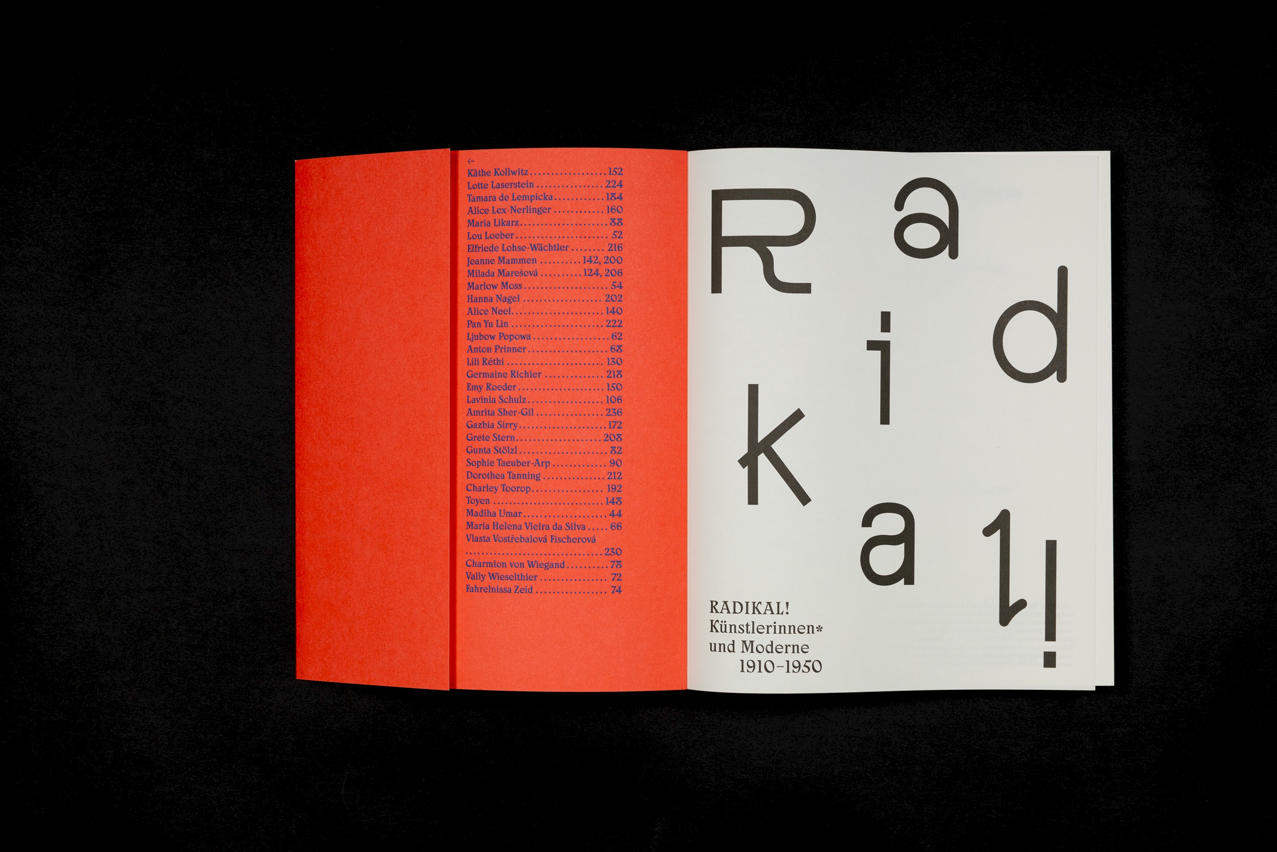 Central to the design concept was the visibility of the women* artists: their names are set in eccentric typefaces and are typographically highlighted within the body text.