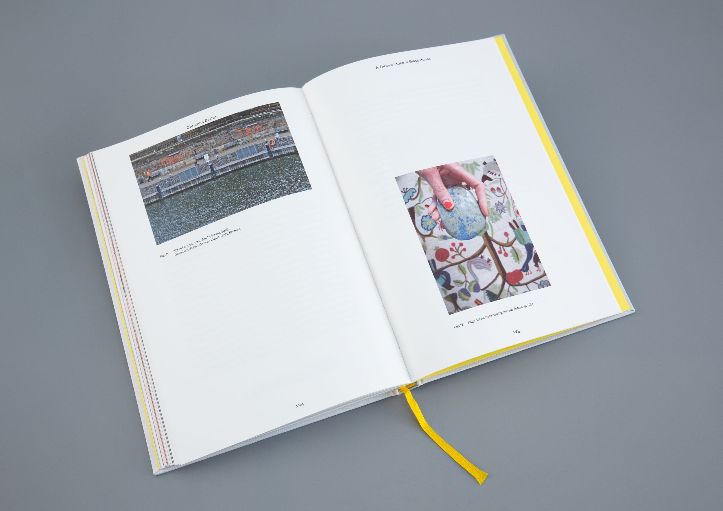 The yellow book ribbon acts as a direct reference to the hand using the book and the intimacy of reading, as well as Newby’s work.