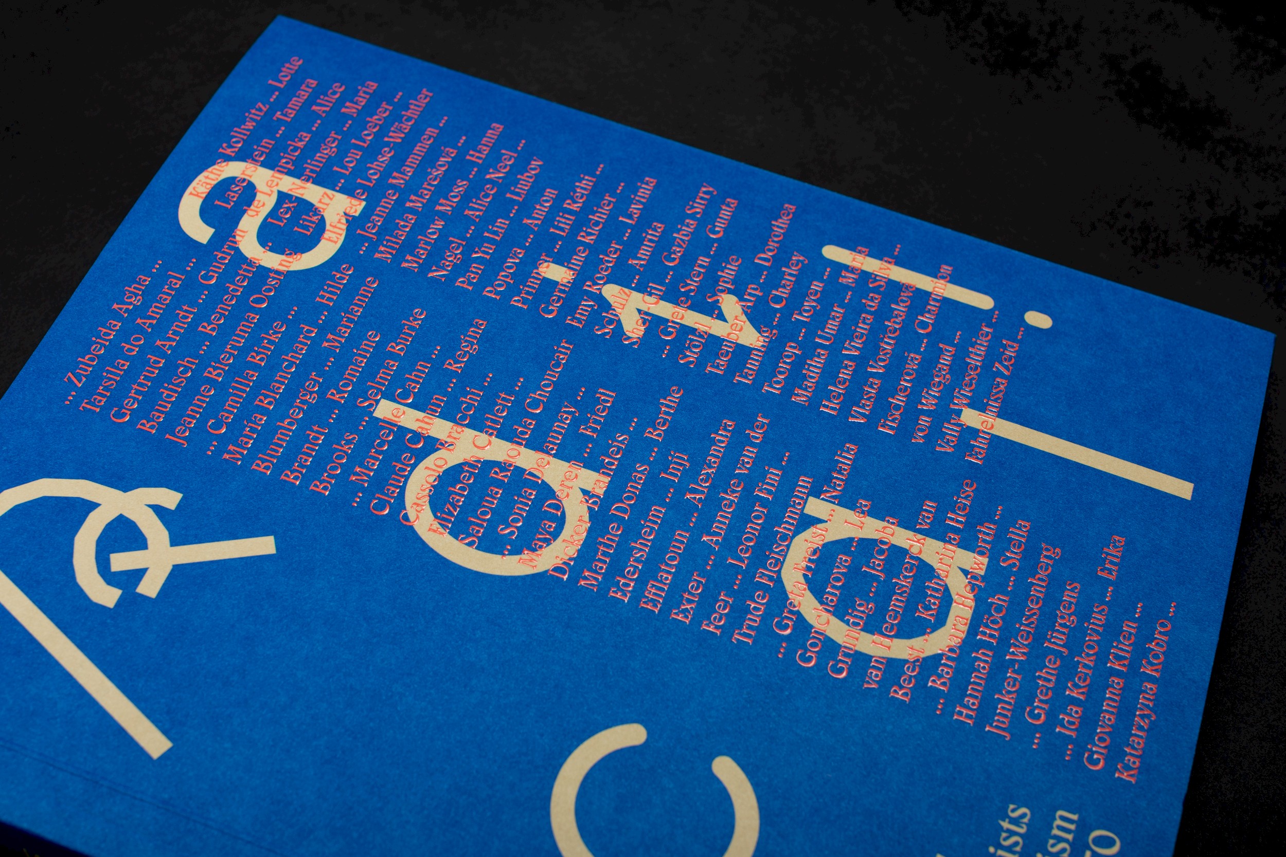Central to the design concept was the visibility of the women* artists: their names are set in eccentric typefaces and are typographically highlighted within the body text.